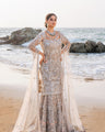 Additional Description: 1- Introducing our masterpiece, net embroidered cutwork shirt, meticulously adorned with intricate handcrafted adda work. This opulent creation showcases a harmonious blend of naqshi, dabka, and Swarovski pearls, The shirt has an exaggerated embroidered sleeves cutline and while the back is adorned with a lavish display of heavy adda work. Every stitch tells a story of skilled craftsmanship 2- Complementing the shirt is a mermaid lehnga, also crafted with the utmost attention to detail. The net fabric is embellished with heavy handcrafted adda work on the back and sides, adding to its allure. 3- To complete this ensemble, a separate inner made of shabnam fabric is included.