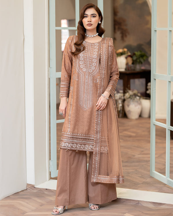 Stunning cotton jacquard shirt adorned with intricate crystal embroidery on the neckline and playful tassels