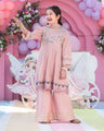 1-Cotton chikankari sequin embroidery A-shirt adorned with crystal and pearl adda work on the neckline finished with hanging tassels 2-Chiffon digital print dupatta with delicate lace detailing 3-Cotton plazo adorned with laces |