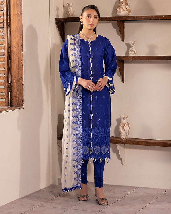 Cotton chikkankari front-open shirt Adorned with exquisite embroidery featuring organza applique work on the boarders matching pearls, and meticulously handcrafted motifs