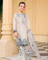 Additional Description: 1-Elevate your style with our exquisite cotton jacquard shirt, featuring intricate sequin embroidery and beautiful beads detailing along the shirt bottom 2-Complete your look with the organza embroidered dupatta adorned with 3D flowers and pearl embellishments 3-Pair it with the cotton printed shararah for a sophisticated and elegant ensemble. Experience luxury and sophistication with our stunning collection.