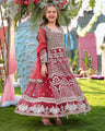| Organza maxi dress is beautifully crafted with sequin embroidery, pearls, tassels, and adda work on the neckline Net dupatta features sequin embroidery and pearl embellishments Viscose trousers. |