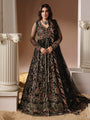Net open maxi adorned with intricate sequin embroidery, hand-crafted adda work, naqshi dabka work, and cutdana stones.further enhanced by chainwork, crystals, and 3D floral embellishments, complemented by a viscose digital print inner layer.