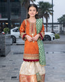 Additional Description: "1-Introducing our exquisite masterpiece: a raw silk dori embroidered shirt, meticulously adorned with intricate handcrafted adda work and finished off with a touch of elegance through the addition of tassels. 2-we have paired it with a mesmerizing organza lurex dupatta, delicately embellished with lace, adding a touch of grace and sophistication to your attire. 3-Jacquard lurex ghararah, featuring a two-tone border and adorned with captivating screen and digital printing."
